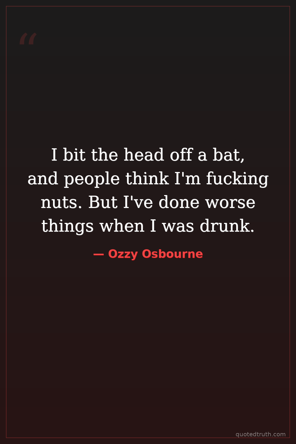 I bit the head off a bat, and people think I'm fucking nuts. But I've done worse things when I was drunk.