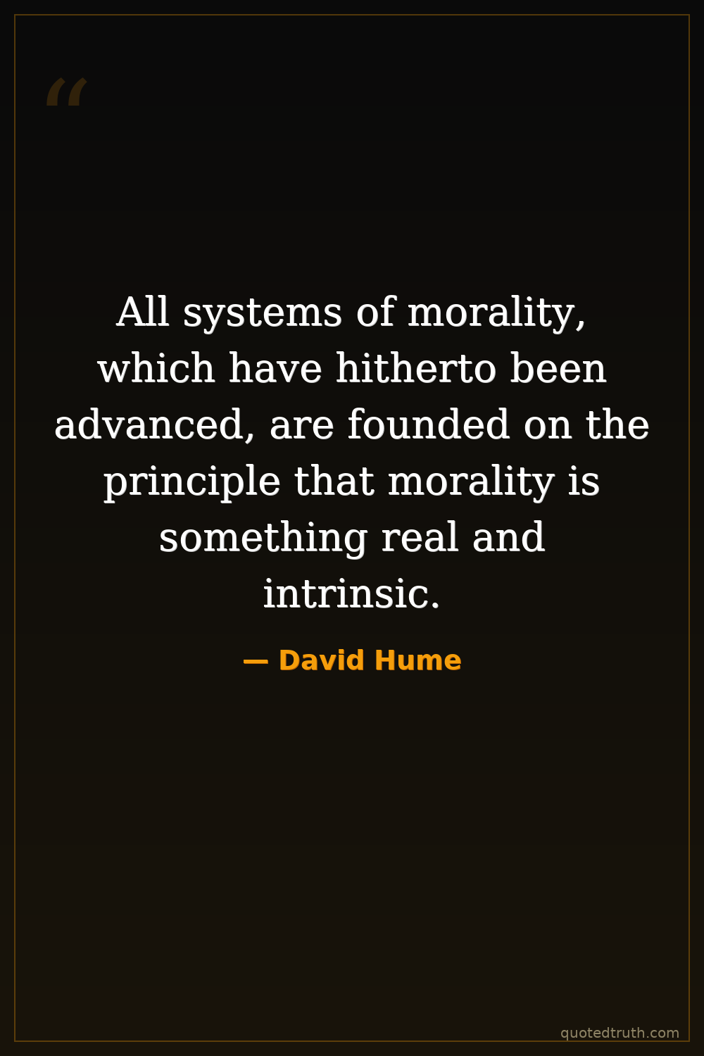 All systems of morality, which have hitherto been advanced, are founded on the principle that morality is something real and intrinsic.