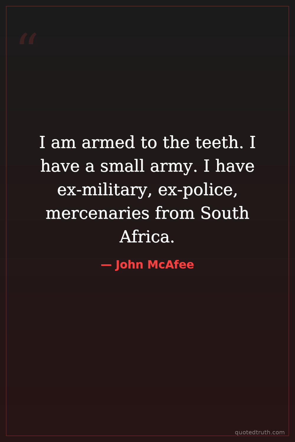 I am armed to the teeth. I have a small army. I have ex-military, ex-police, mercenaries from South Africa.