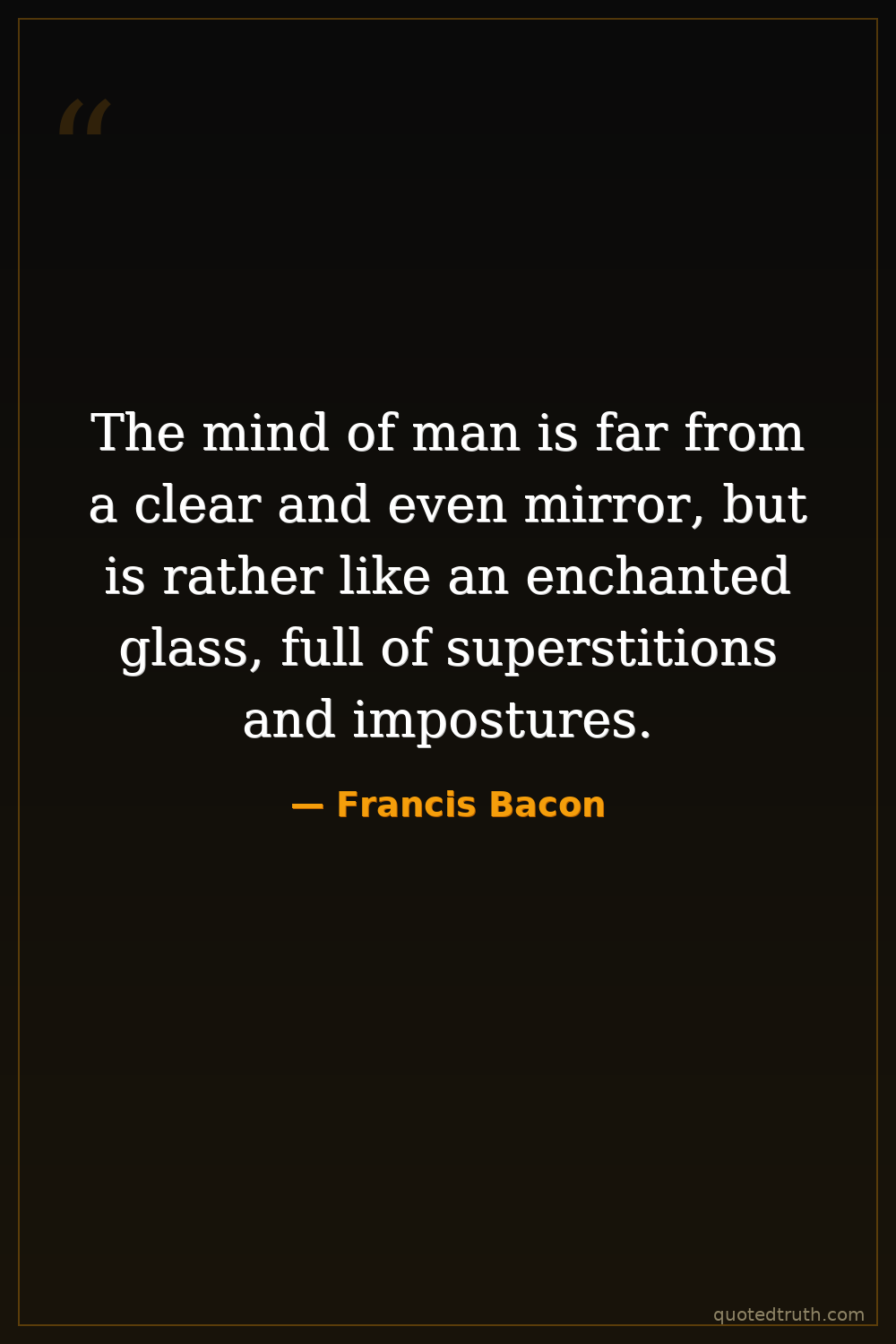 The mind of man is far from a clear and even mirror, but is rather like an enchanted glass, full of superstitions and impostures.