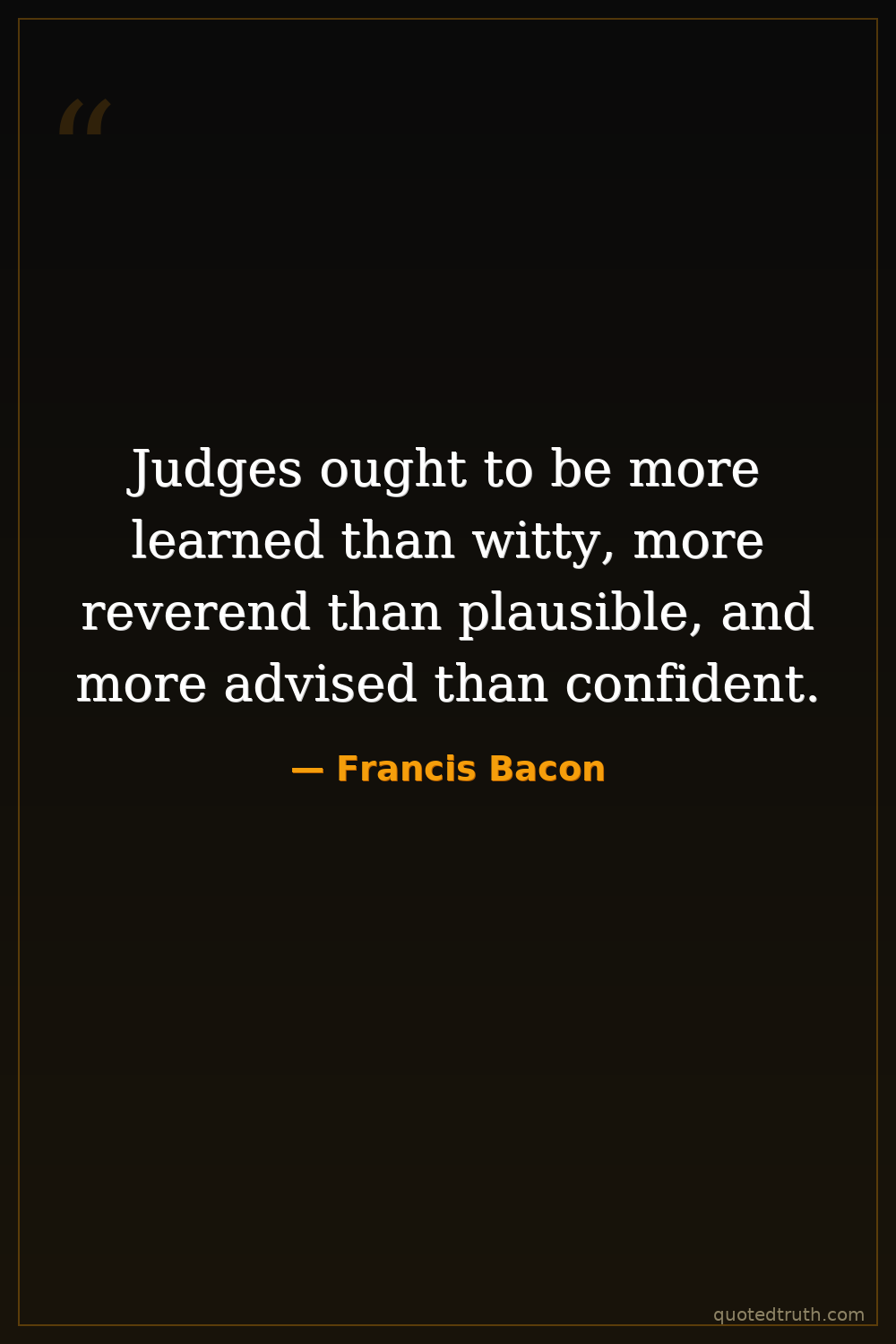Judges ought to be more learned than witty, more reverend than plausible, and more advised than confident.