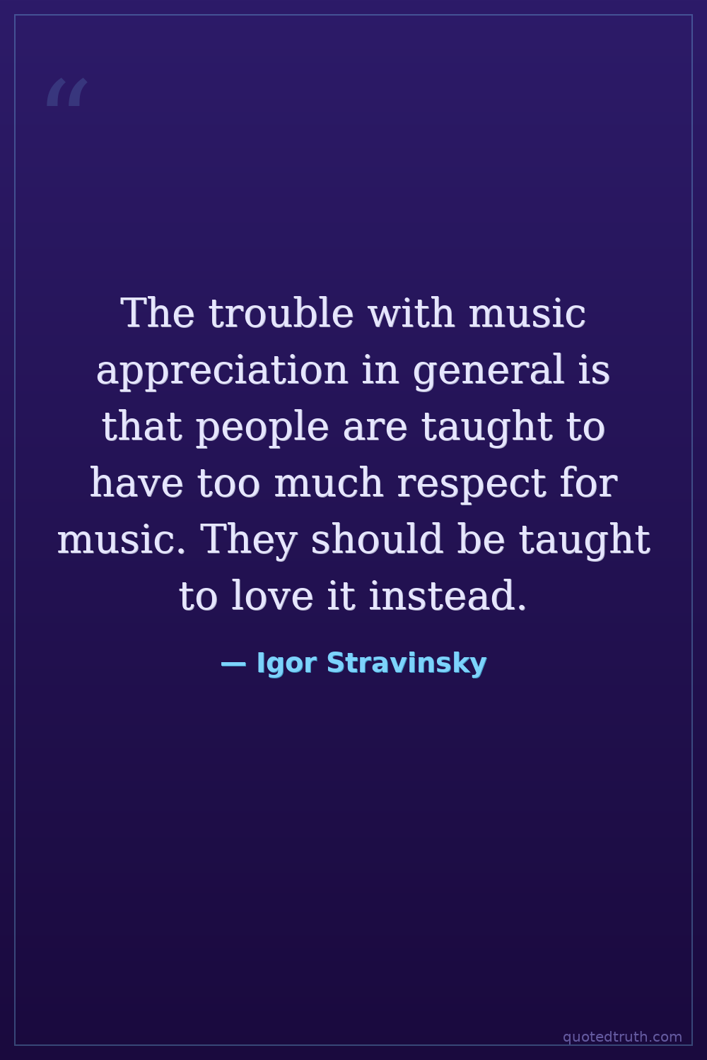 The trouble with music appreciation in general is that people are taught to have too much respect for music. They should be taught to love it instead.