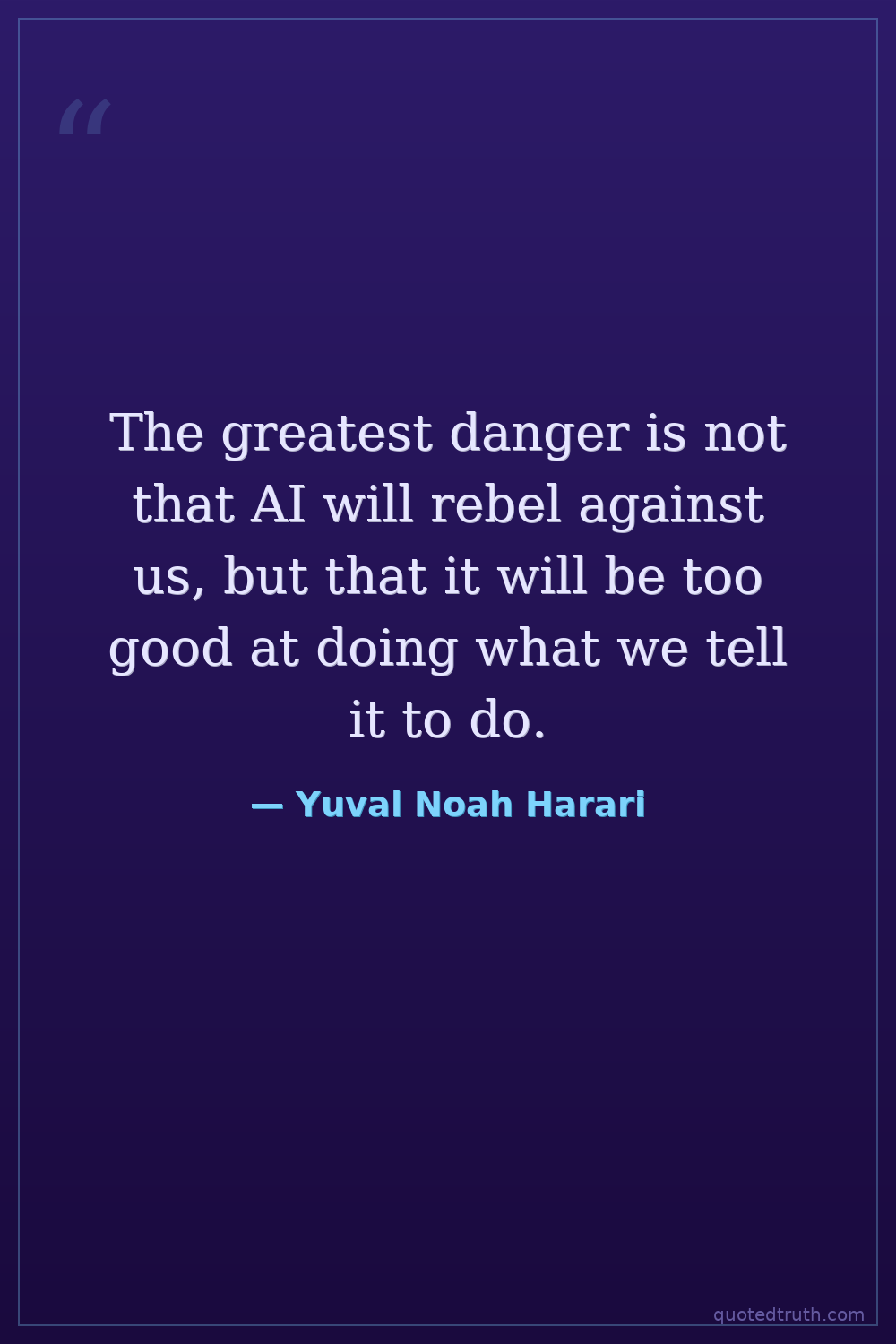 The greatest danger is not that AI will rebel against us, but that it will be too good at doing what we tell it to do.
