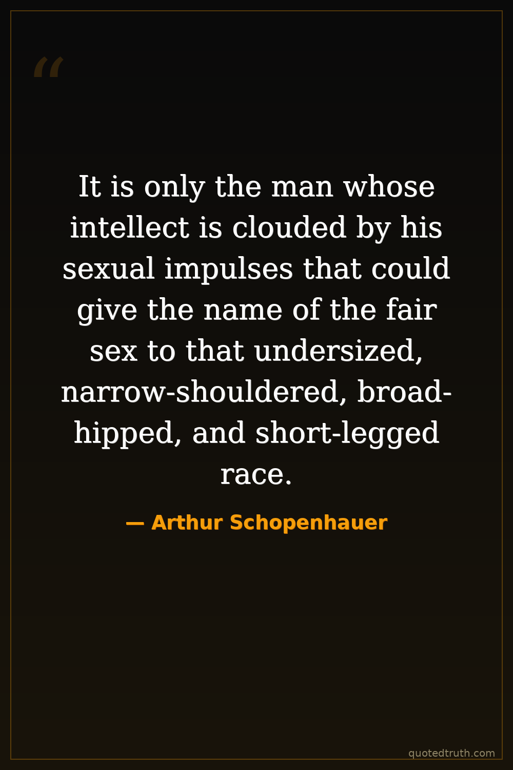 It is only the man whose intellect is clouded by his sexual impulses that could give the name of the fair sex to that undersized, narrow-shouldered, broad-hipped, and short-legged race.