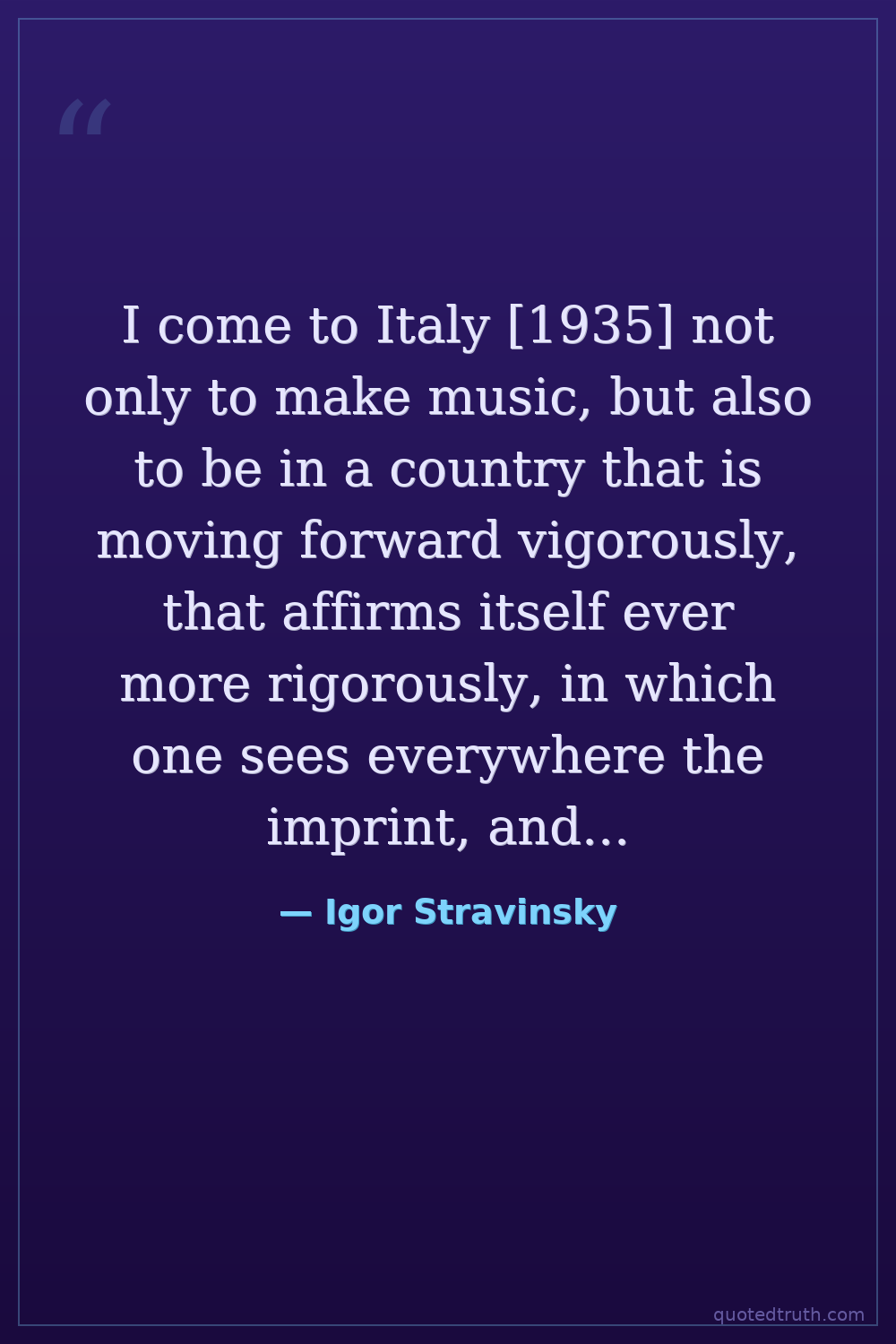 I come to Italy [1935] not only to make music, but also to be in a country that is moving forward vigorously, that affirms itself ever more rigorously, in which one sees everywhere the imprint, and one senses the will of an intelligent and powerful regime. I became a French citizen, but spiritually I am also a fascist, above all a fascist.