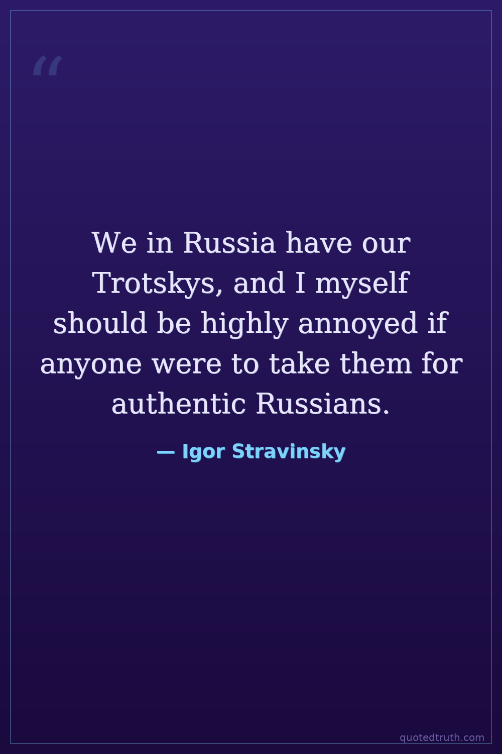 We in Russia have our Trotskys, and I myself should be highly annoyed if anyone were to take them for authentic Russians.
