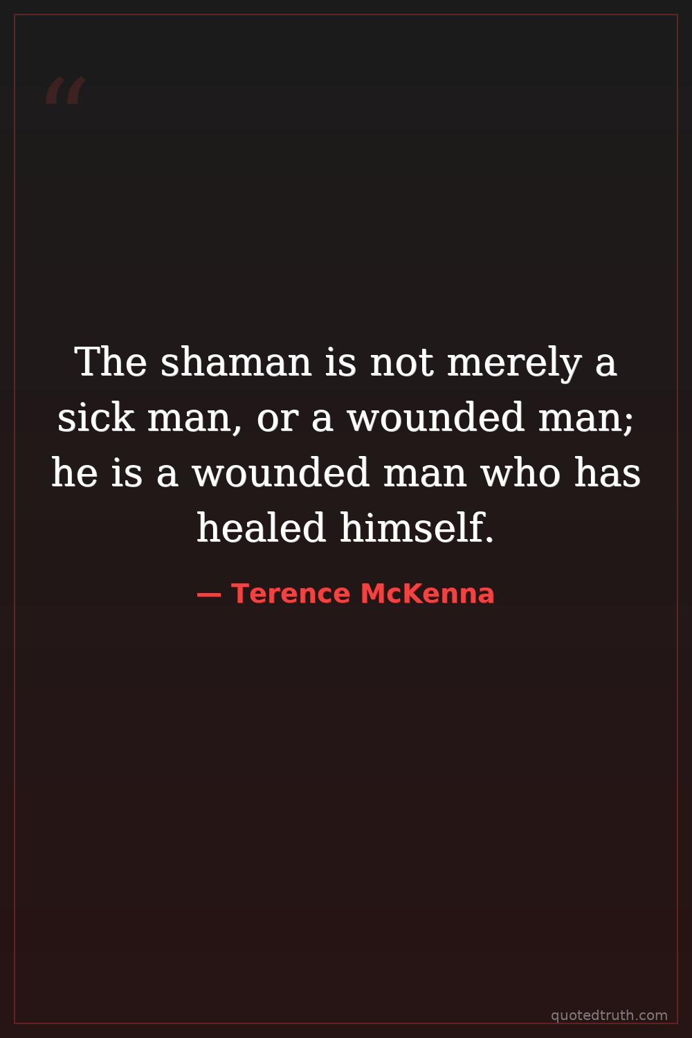 The shaman is not merely a sick man, or a wounded man; he is a wounded man who has healed himself.