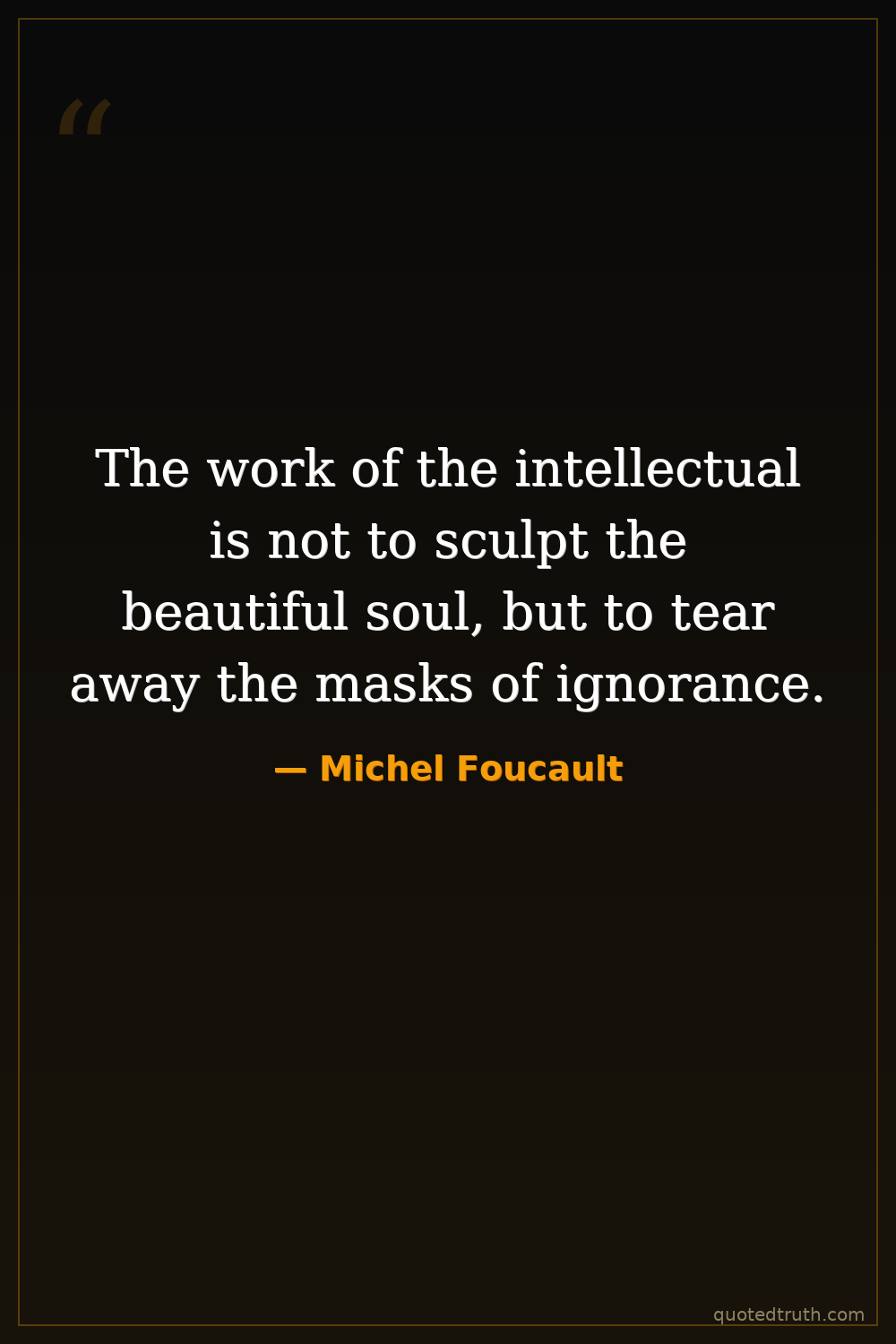 The work of the intellectual is not to sculpt the beautiful soul, but to tear away the masks of ignorance.