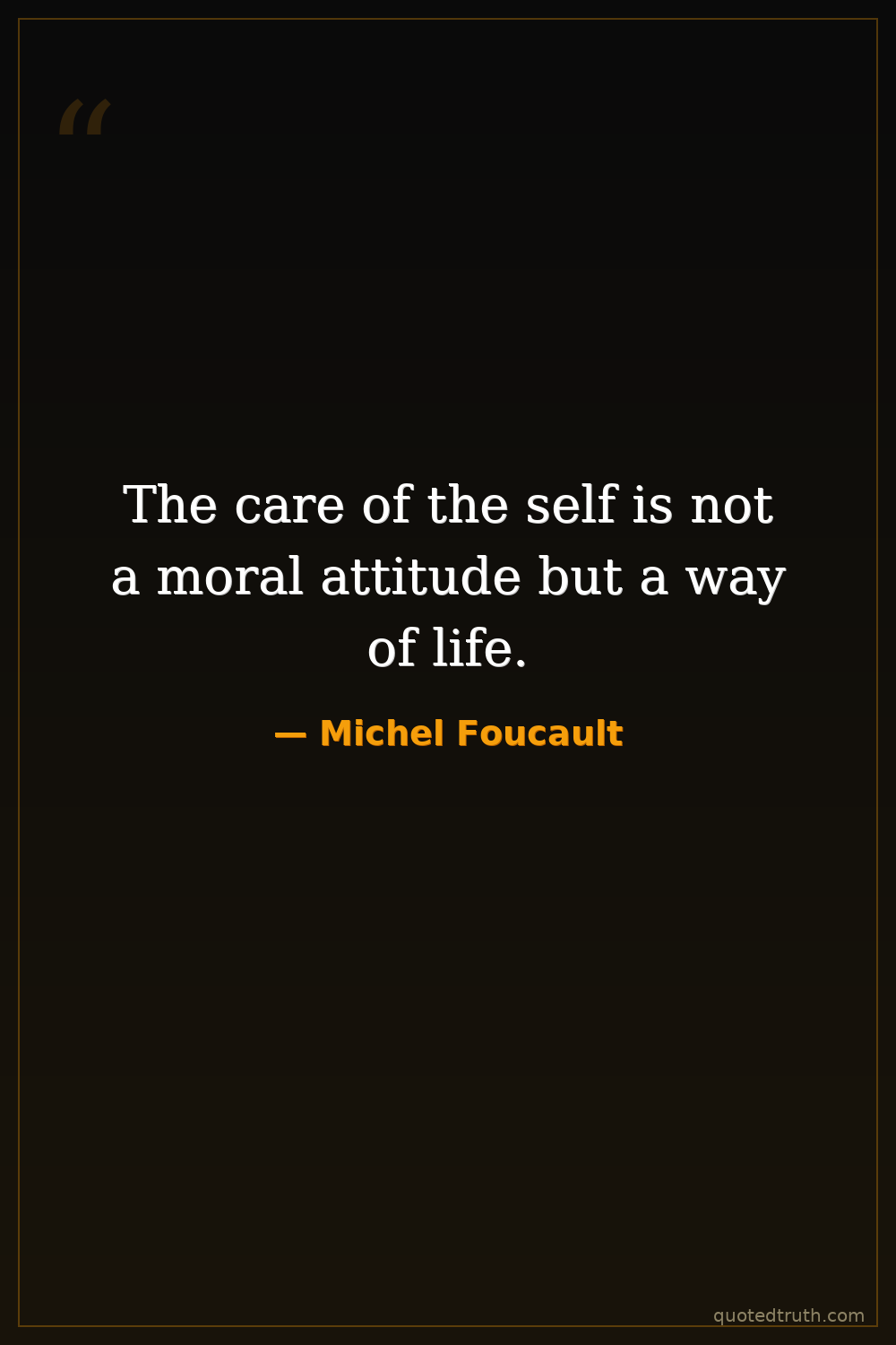 The care of the self is not a moral attitude but a way of life.