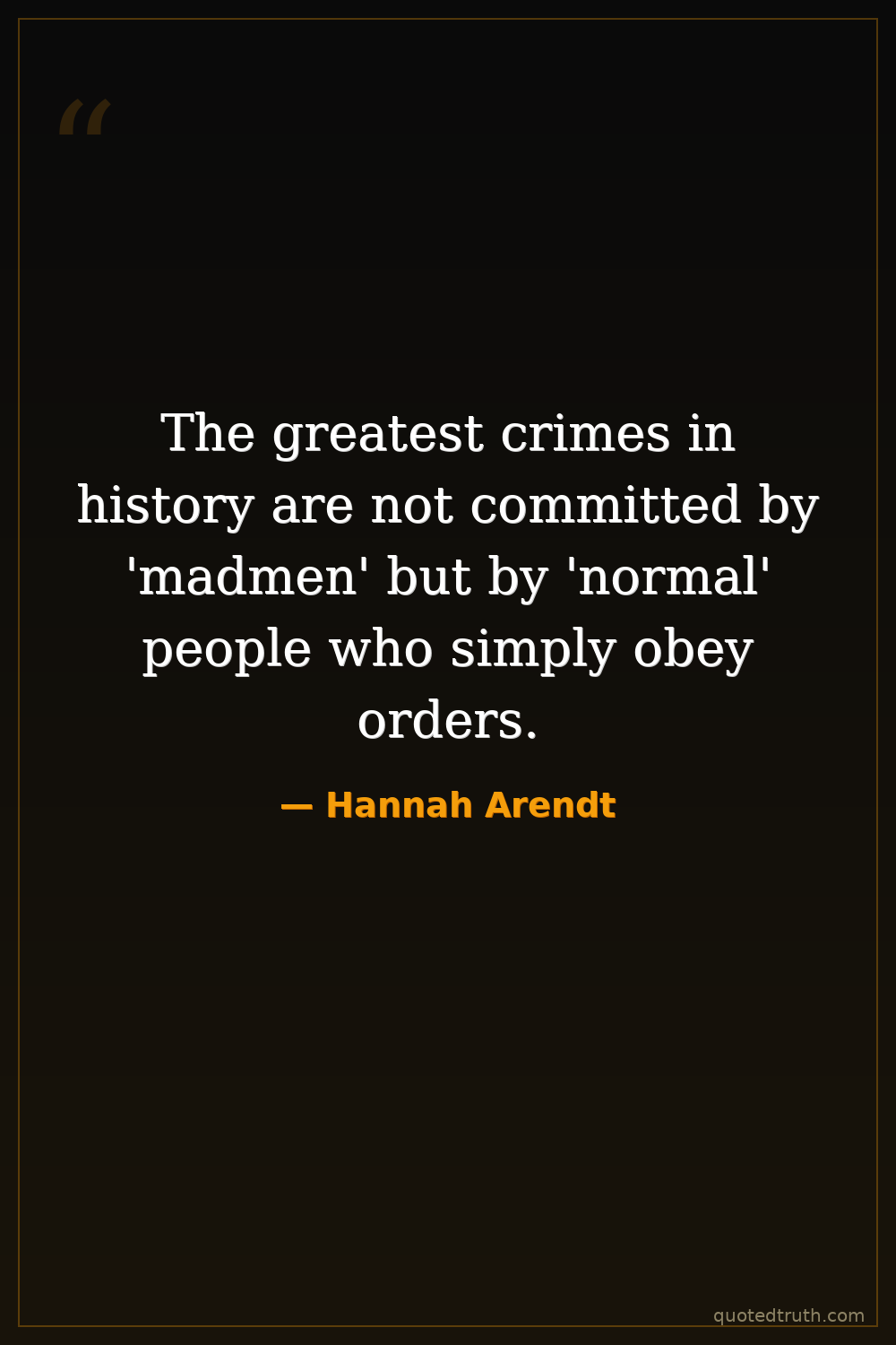 The greatest crimes in history are not committed by 'madmen' but by 'normal' people who simply obey orders.