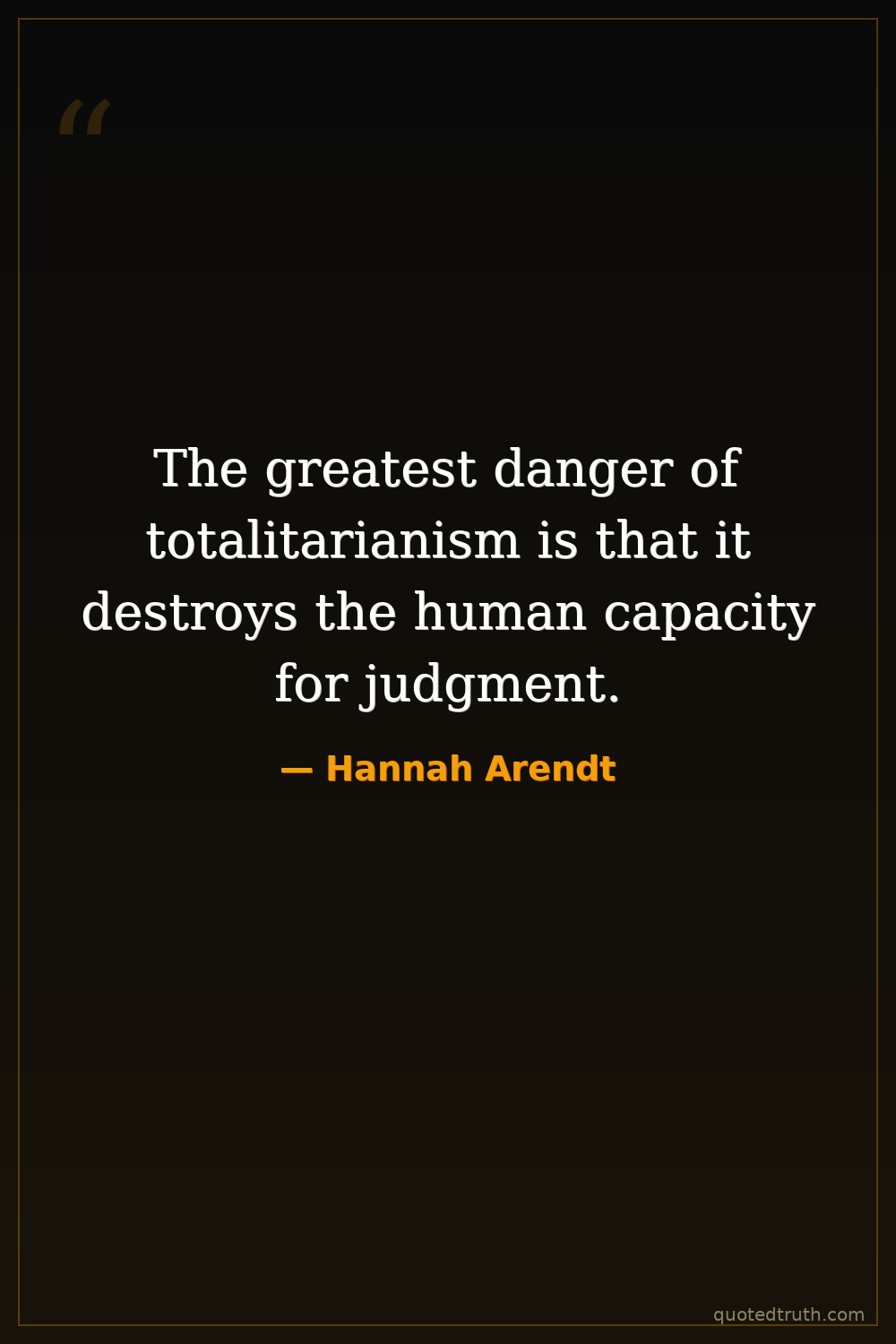 The greatest danger of totalitarianism is that it destroys the human capacity for judgment.