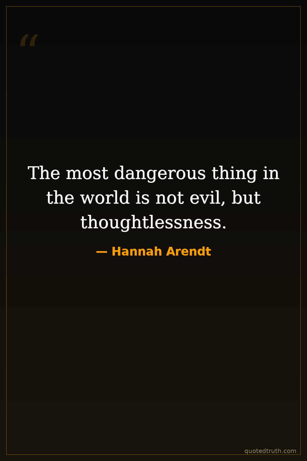 The most dangerous thing in the world is not evil, but thoughtlessness.