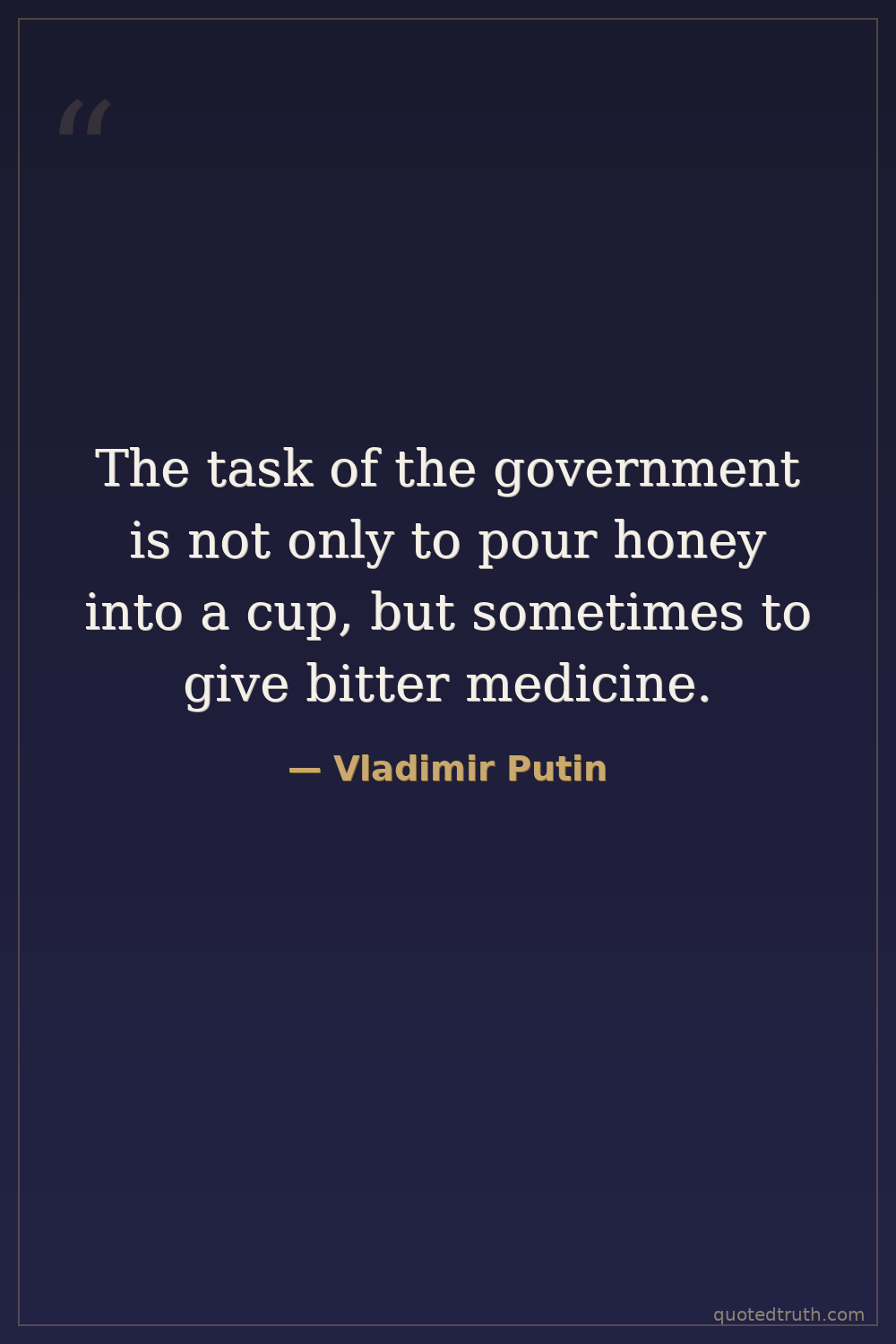 The task of the government is not only to pour honey into a cup, but sometimes to give bitter medicine.