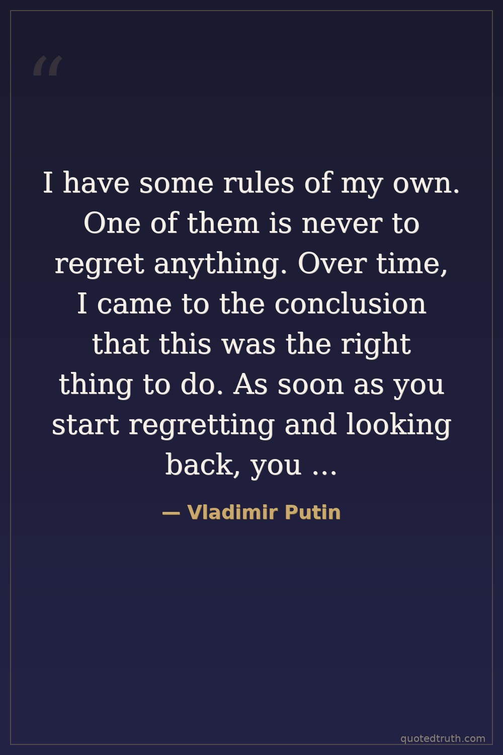 I have some rules of my own. One of them is never to regret anything. Over time, I came to the conclusion that this was the right thing to do. As soon as you start regretting and looking back, you start to sour. You always have to think about the future. You always have to look ahead. Of course you have to analyze your past mistakes, but only so that you can learn and correct the course of your life.