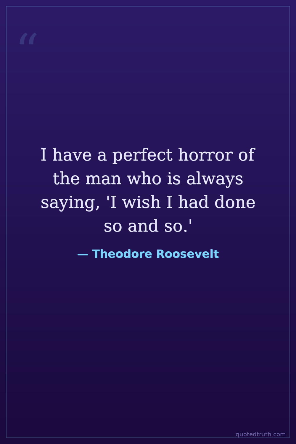 I have a perfect horror of the man who is always saying, 'I wish I had done so and so.'