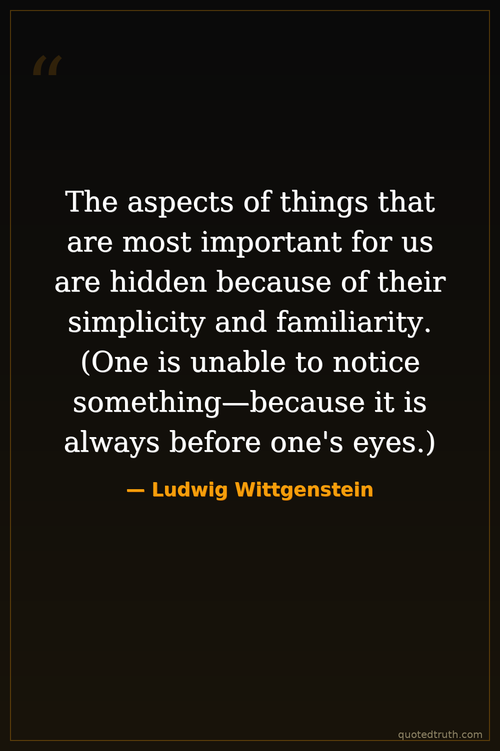 The aspects of things that are most important for us are hidden because of their simplicity and familiarity. (One is unable to notice something—because it is always before one's eyes.)
