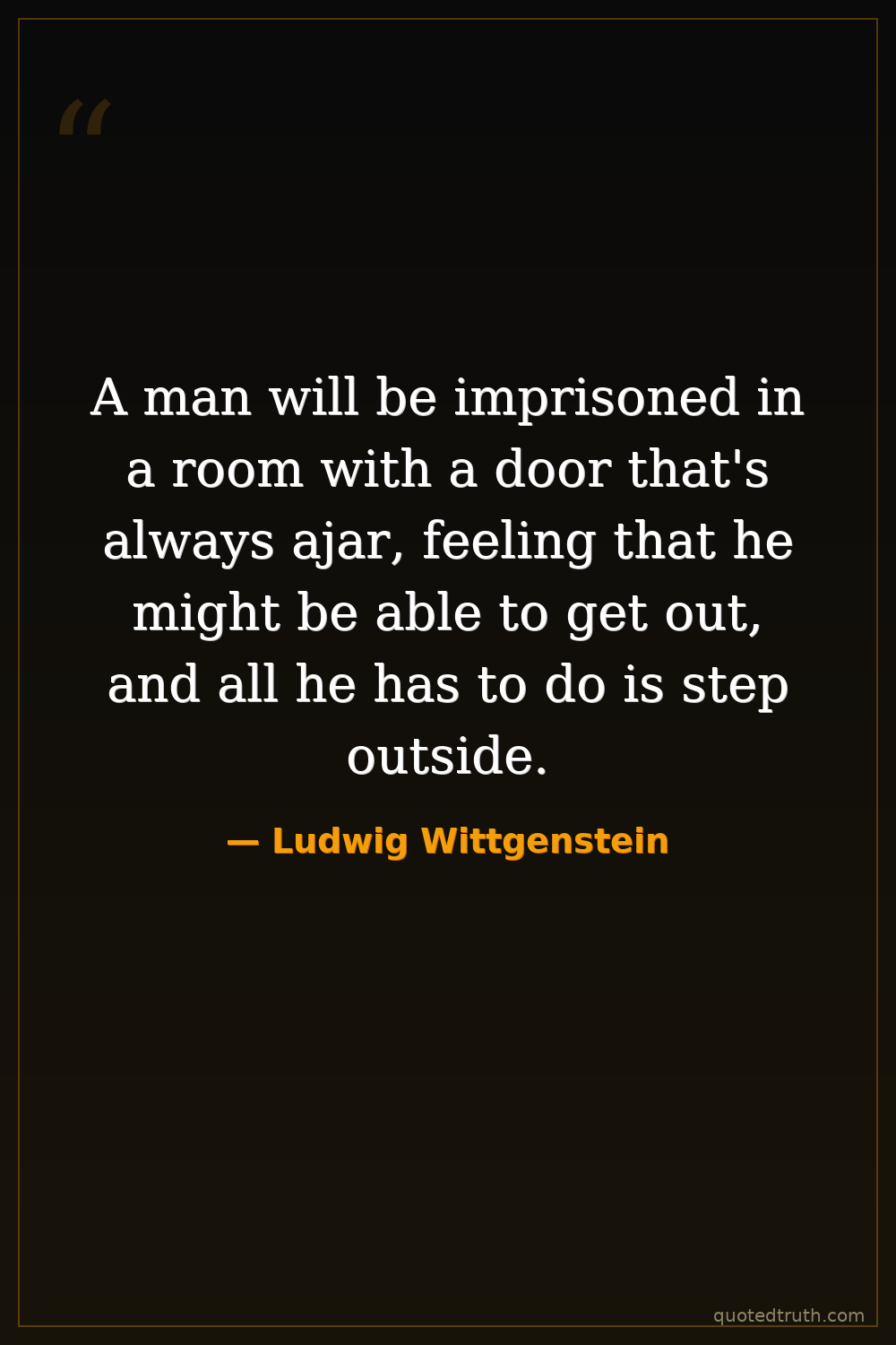 A man will be imprisoned in a room with a door that's always ajar, feeling that he might be able to get out, and all he has to do is step outside.