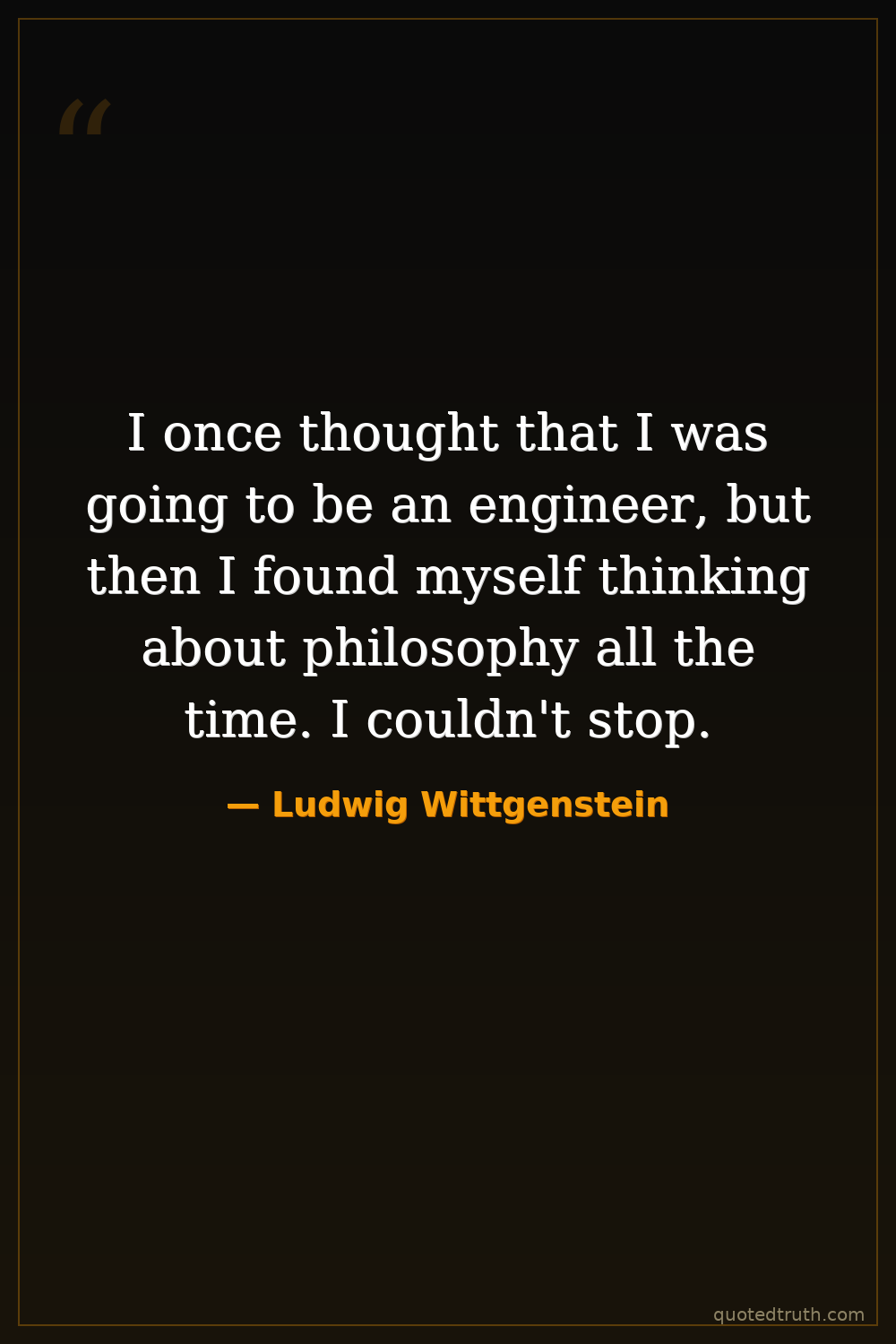 I once thought that I was going to be an engineer, but then I found myself thinking about philosophy all the time. I couldn't stop.