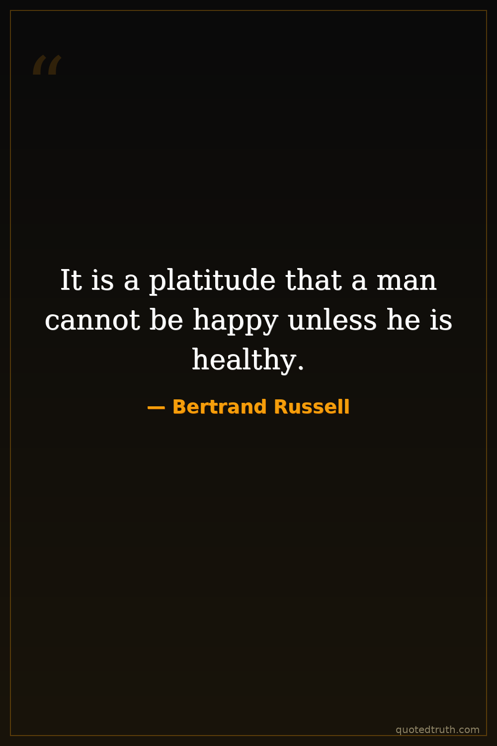 It is a platitude that a man cannot be happy unless he is healthy.