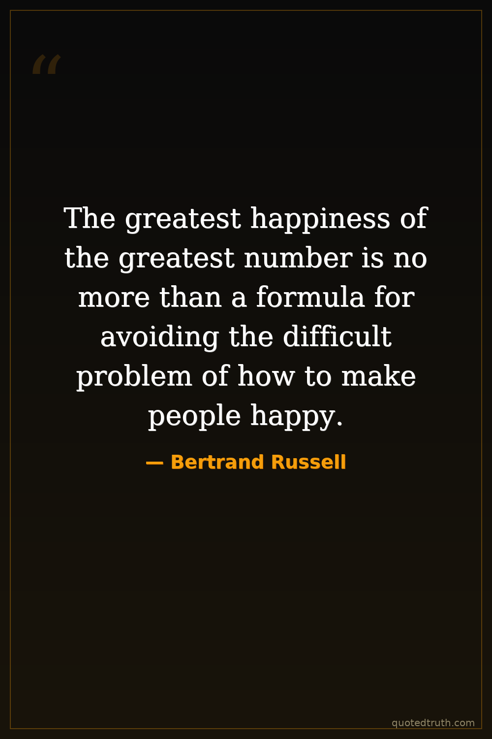 The greatest happiness of the greatest number is no more than a formula for avoiding the difficult problem of how to make people happy.