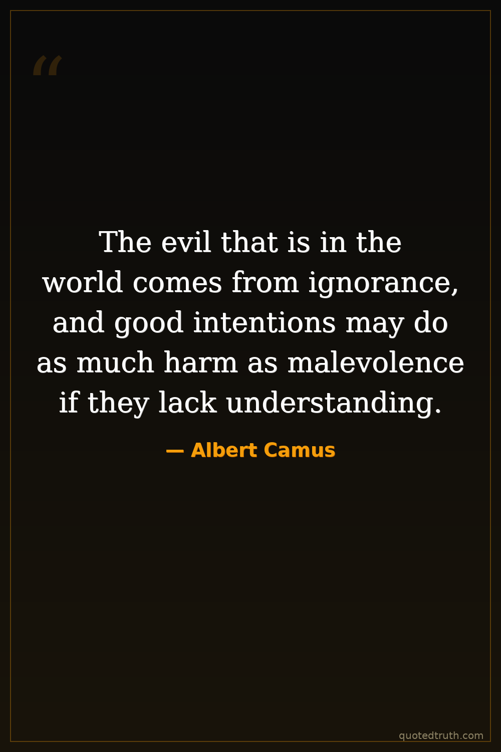 The evil that is in the world comes from ignorance, and good intentions may do as much harm as malevolence if they lack understanding.