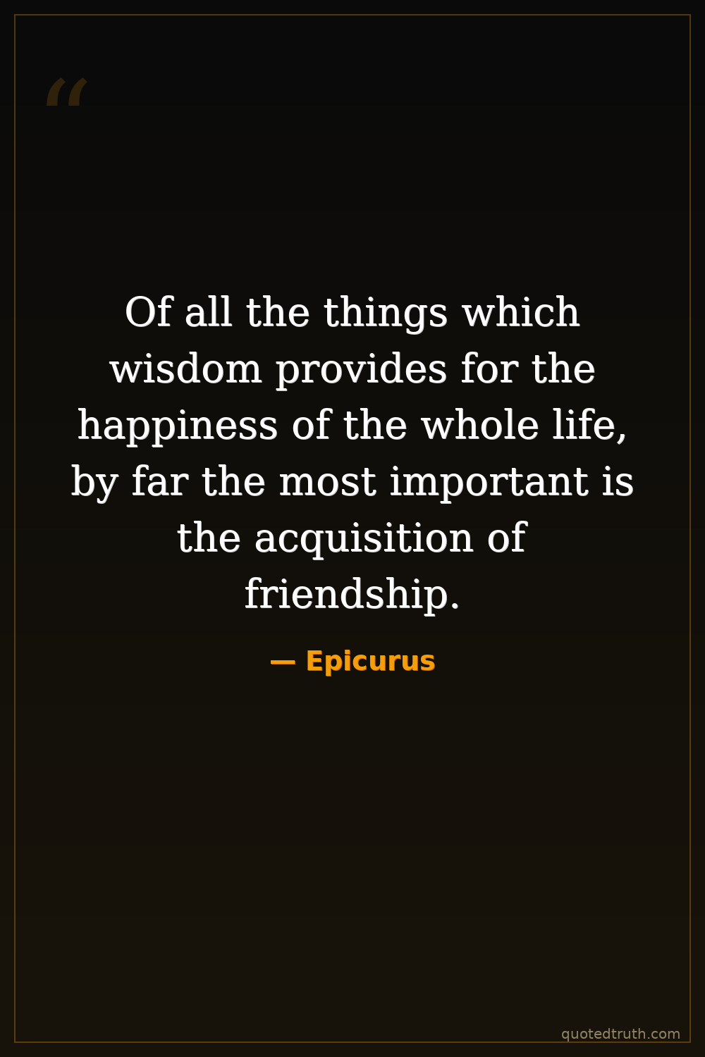Of all the things which wisdom provides for the happiness of the whole life, by far the most important is the acquisition of friendship.