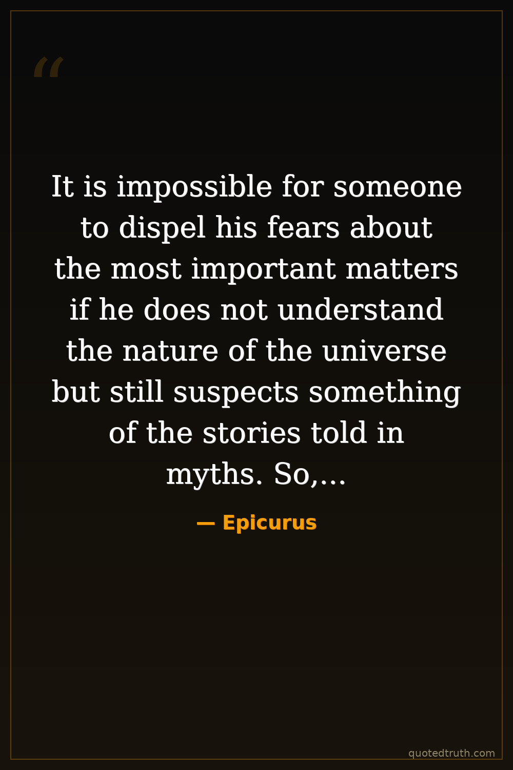 It is impossible for someone to dispel his fears about the most important matters if he does not understand the nature of the universe but still suspects something of the stories told in myths. So, without the study of nature, there is no enjoyment of pure pleasure.