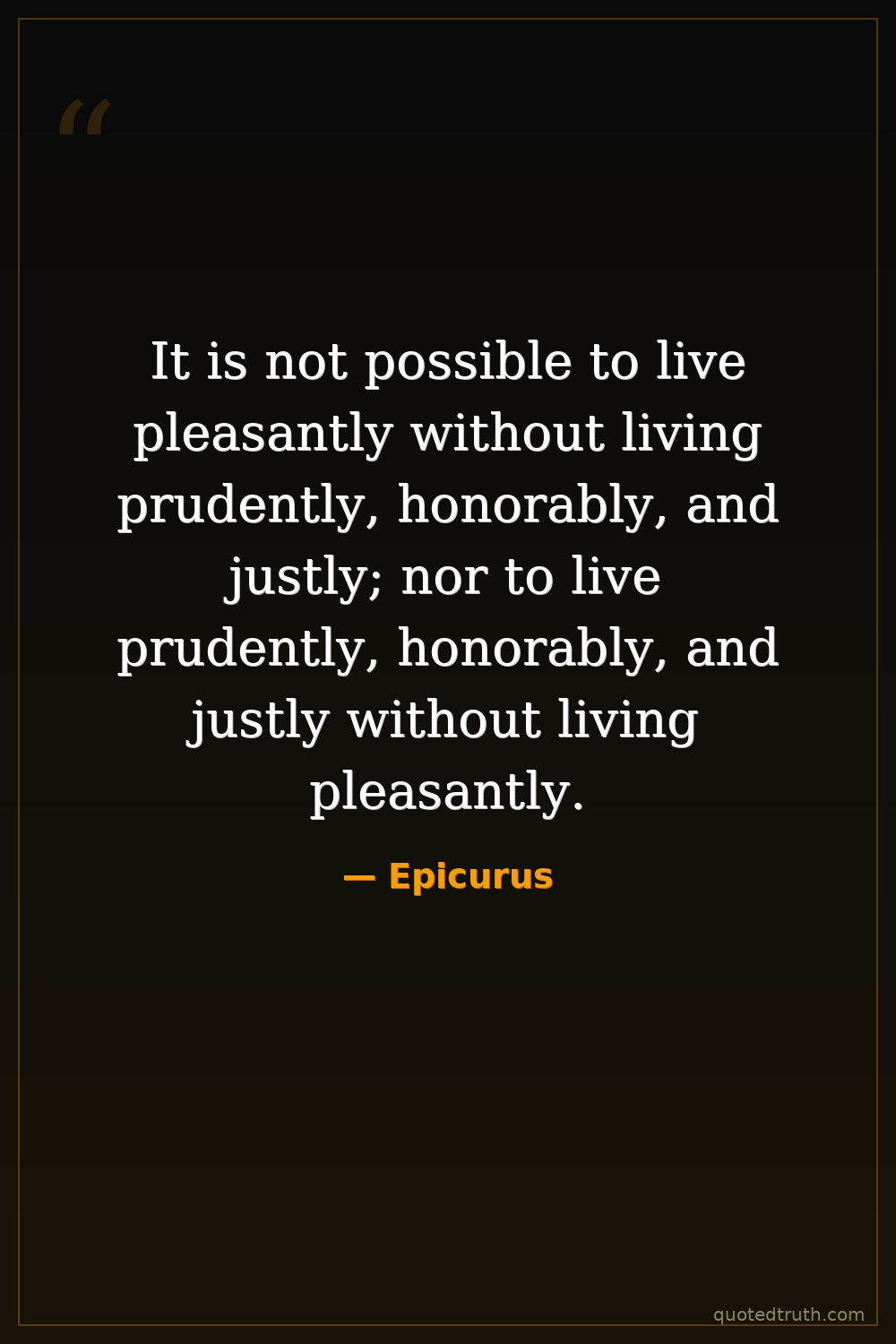 It is not possible to live pleasantly without living prudently, honorably, and justly; nor to live prudently, honorably, and justly without living pleasantly.