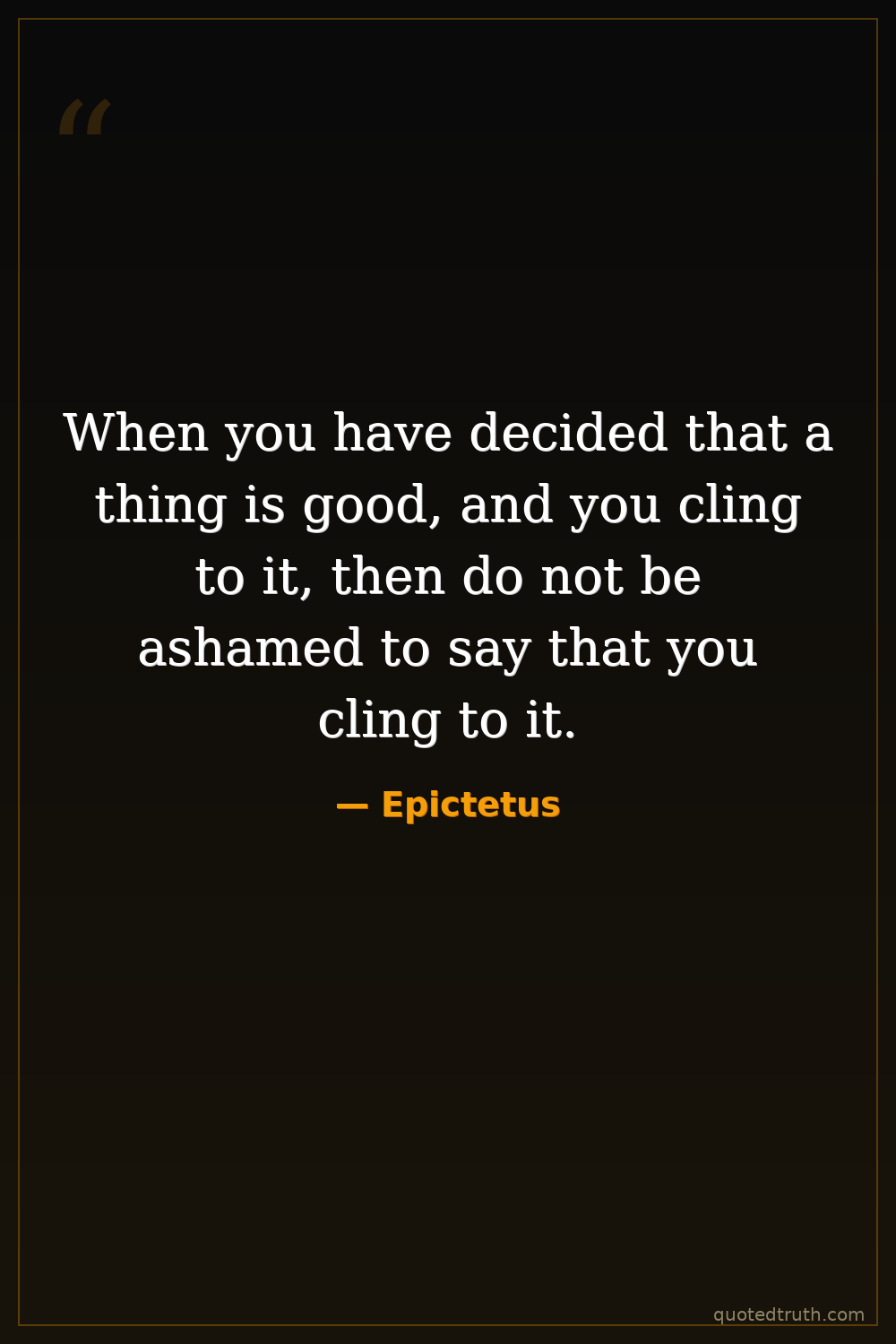 When you have decided that a thing is good, and you cling to it, then do not be ashamed to say that you cling to it.