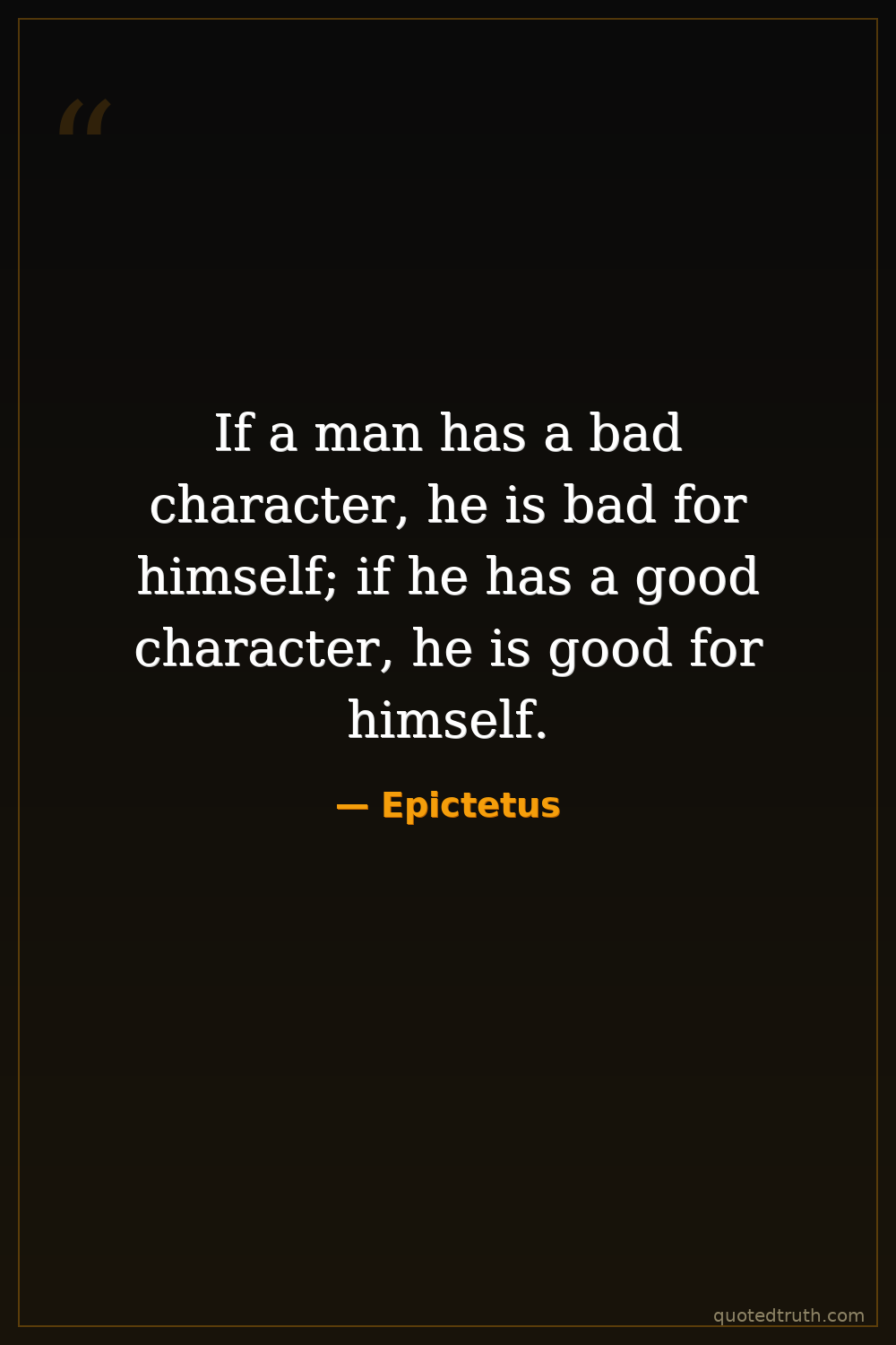 If a man has a bad character, he is bad for himself; if he has a good character, he is good for himself.