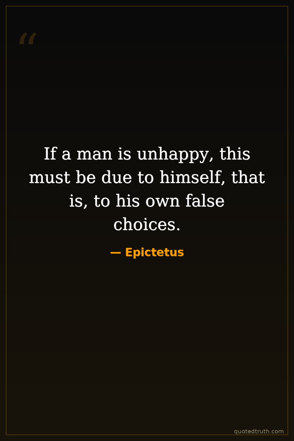 If a man is unhappy, this must be due to himself, that is, to his own false choices.