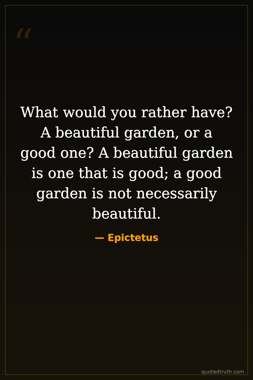 What would you rather have? A beautiful garden, or a good one? A beautiful garden is one that is good; a good garden is not necessarily beautiful.