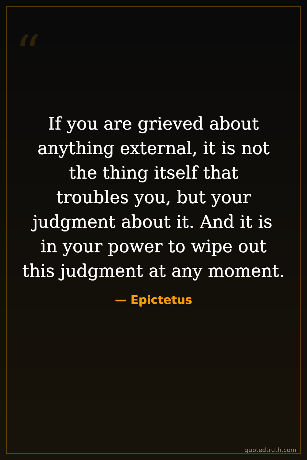 If you are grieved about anything external, it is not the thing itself that troubles you, but your judgment about it. And it is in your power to wipe out this judgment at any moment.