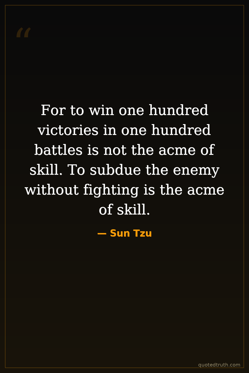 For to win one hundred victories in one hundred battles is not the acme of skill. To subdue the enemy without fighting is the acme of skill.