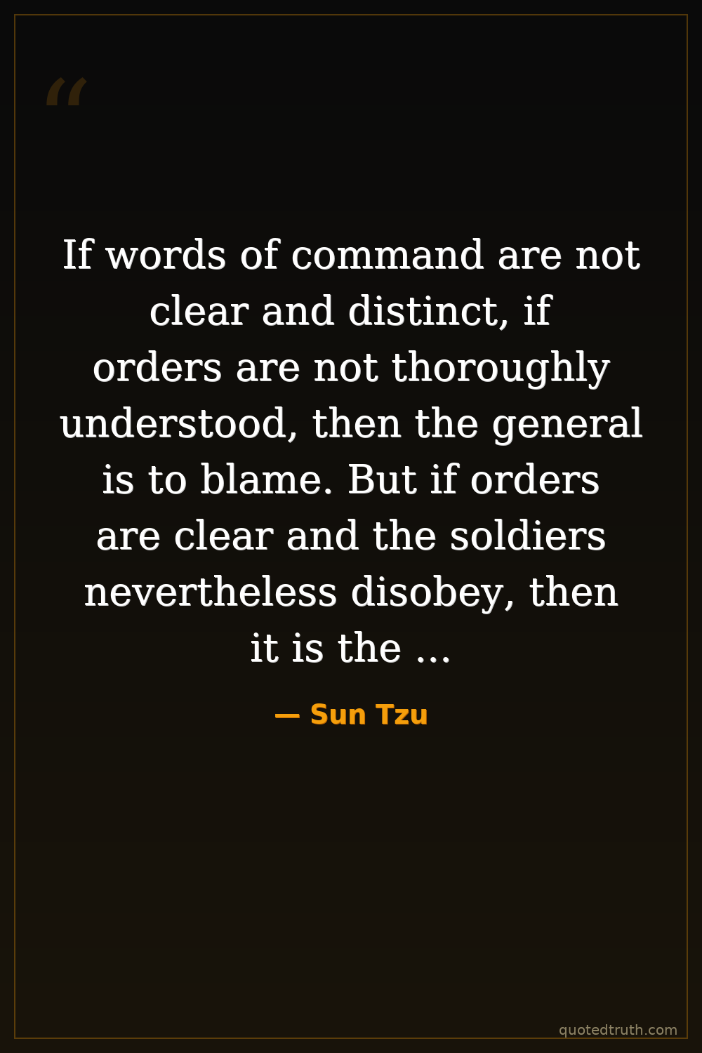 If words of command are not clear and distinct, if orders are not thoroughly understood, then the general is to blame. But if orders are clear and the soldiers nevertheless disobey, then it is the fault of their officers.