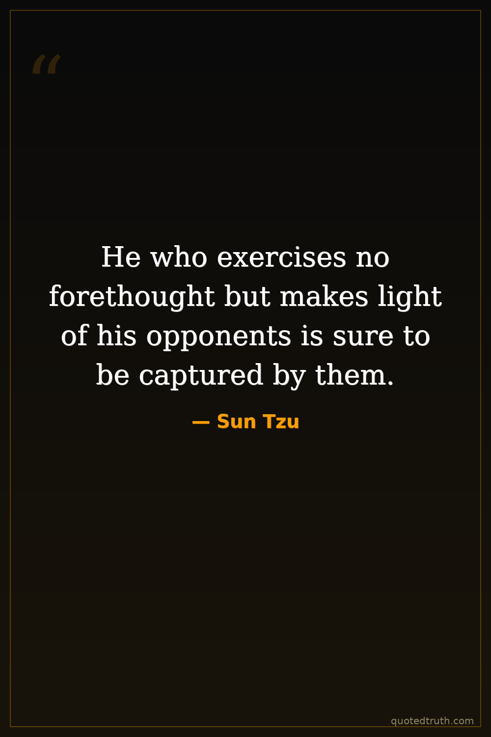 He who exercises no forethought but makes light of his opponents is sure to be captured by them.