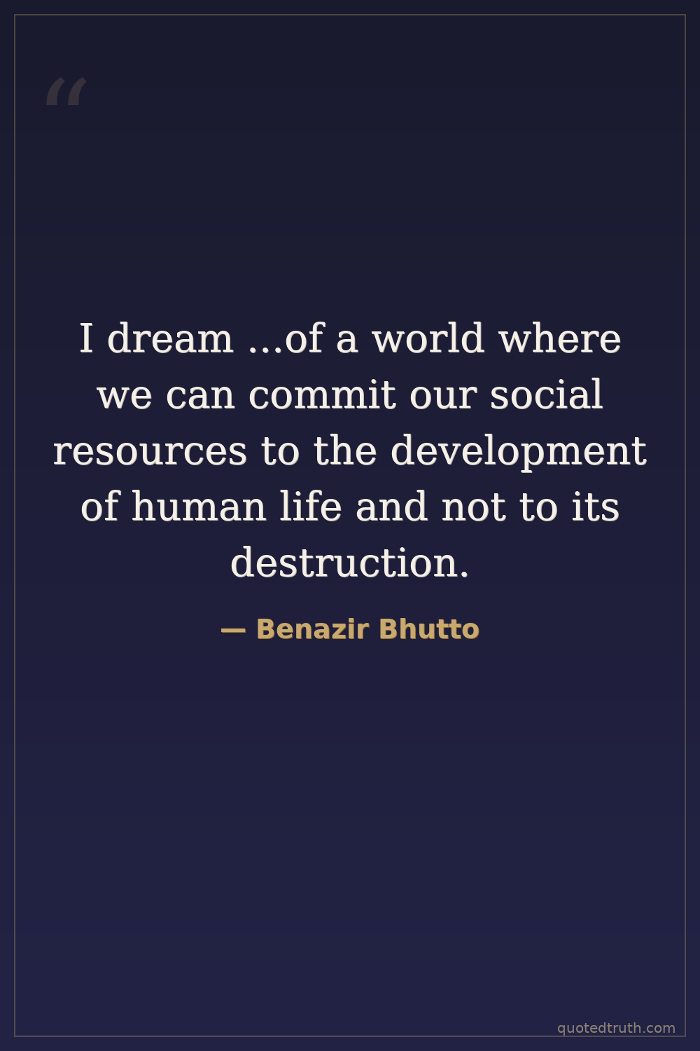 I dream ...of a world where we can commit our social resources to the development of human life and not to its destruction.