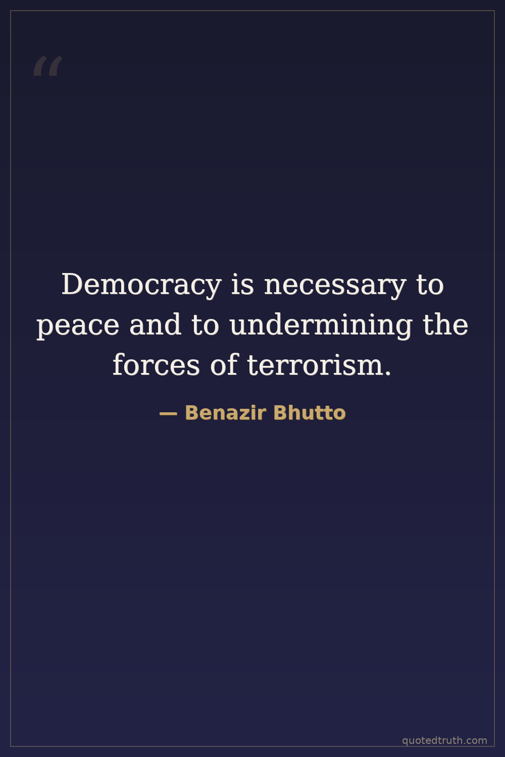 Democracy is necessary to peace and to undermining the forces of terrorism.
