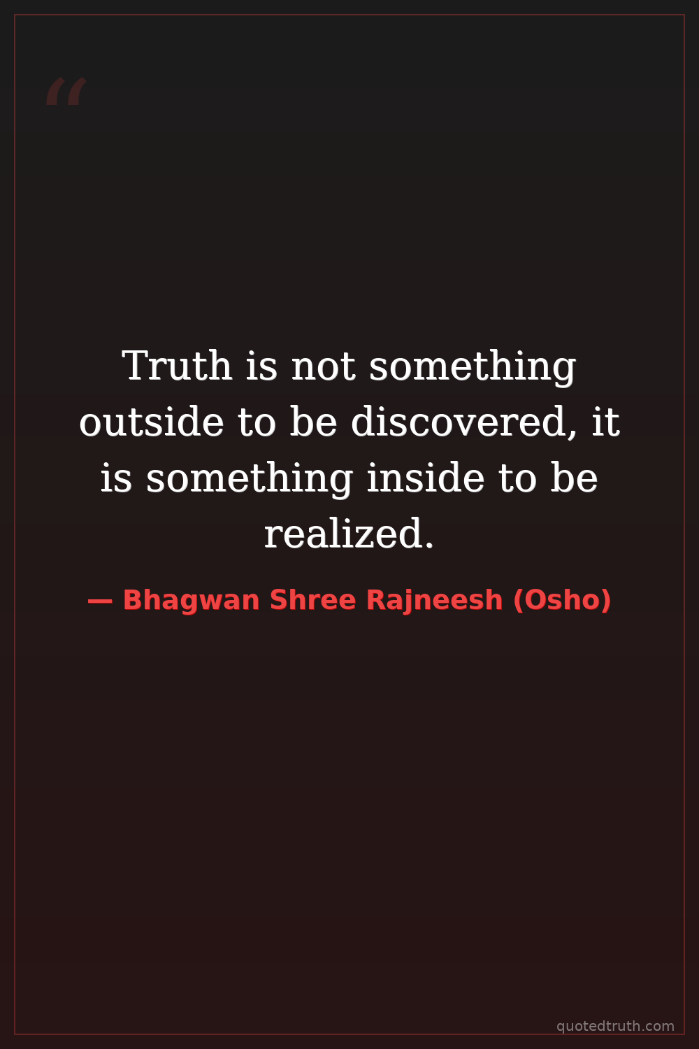 Truth is not something outside to be discovered, it is something inside to be realized.
