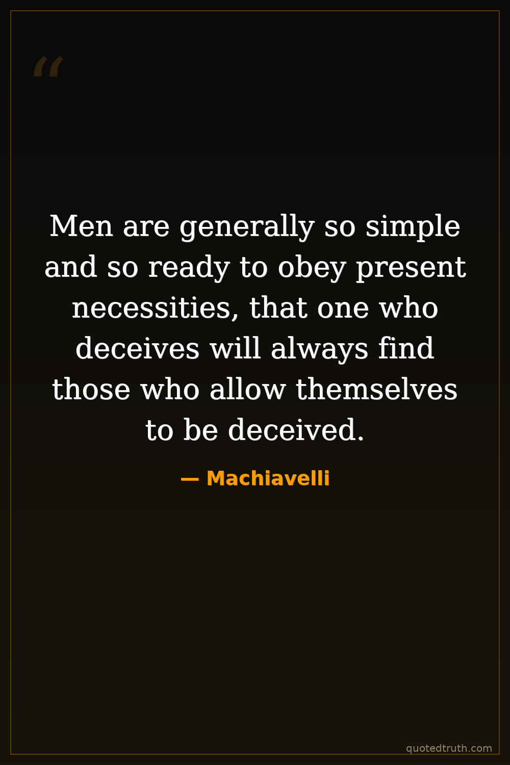 Men are generally so simple and so ready to obey present necessities, that one who deceives will always find those who allow themselves to be deceived.