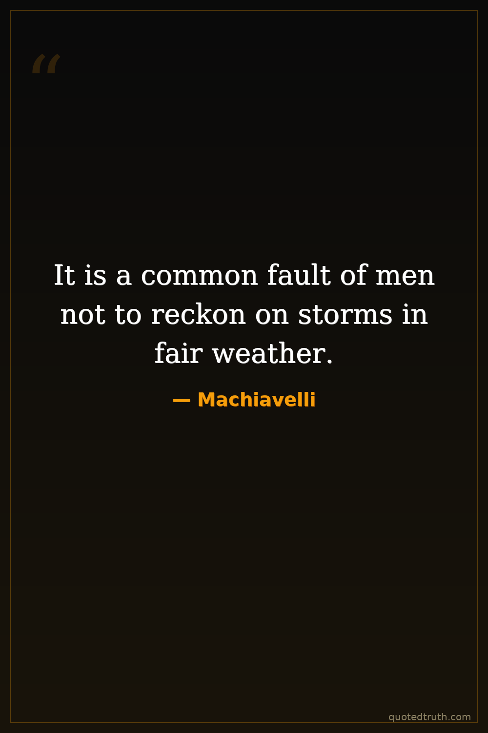 It is a common fault of men not to reckon on storms in fair weather.