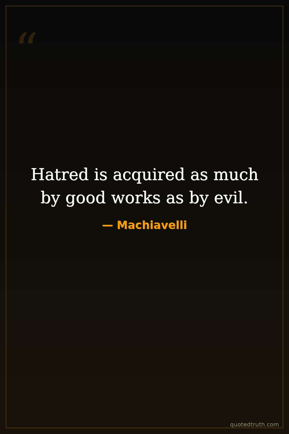 Humorous"Hence it is to be remarked that, in seizing a state, the usurper ought to arrange to commit all his cruelties at once, so as not to have to repeat them every day, and thus able to secure men without f…"