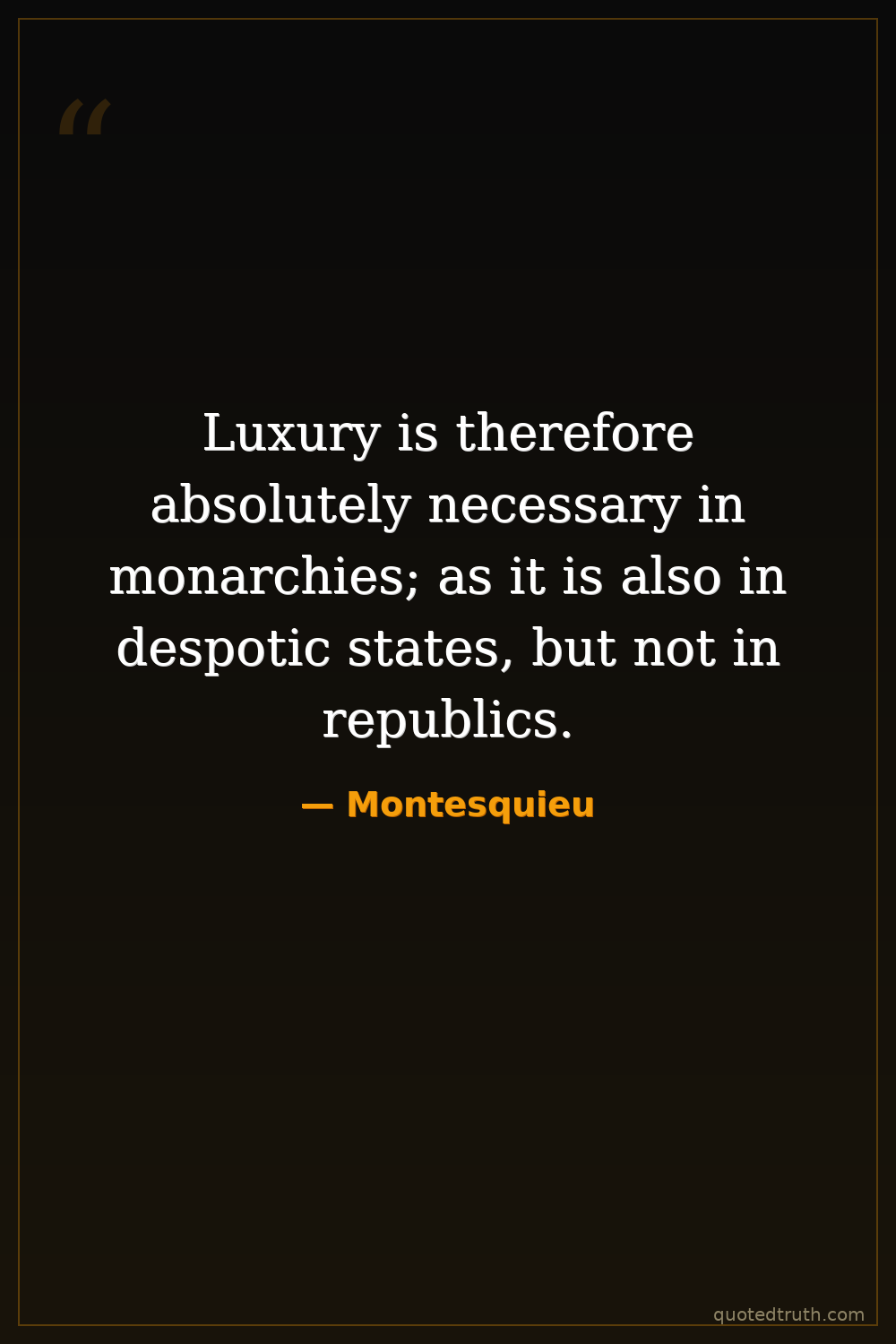 Luxury is therefore absolutely necessary in monarchies; as it is also in despotic states, but not in republics.