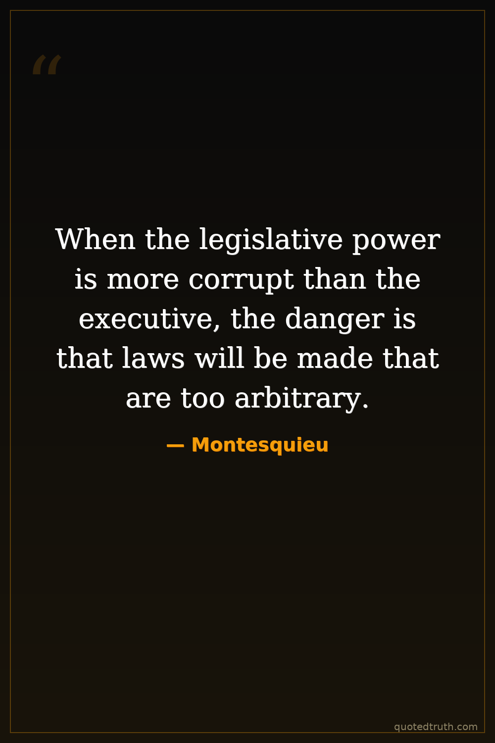 When the legislative power is more corrupt than the executive, the danger is that laws will be made that are too arbitrary.