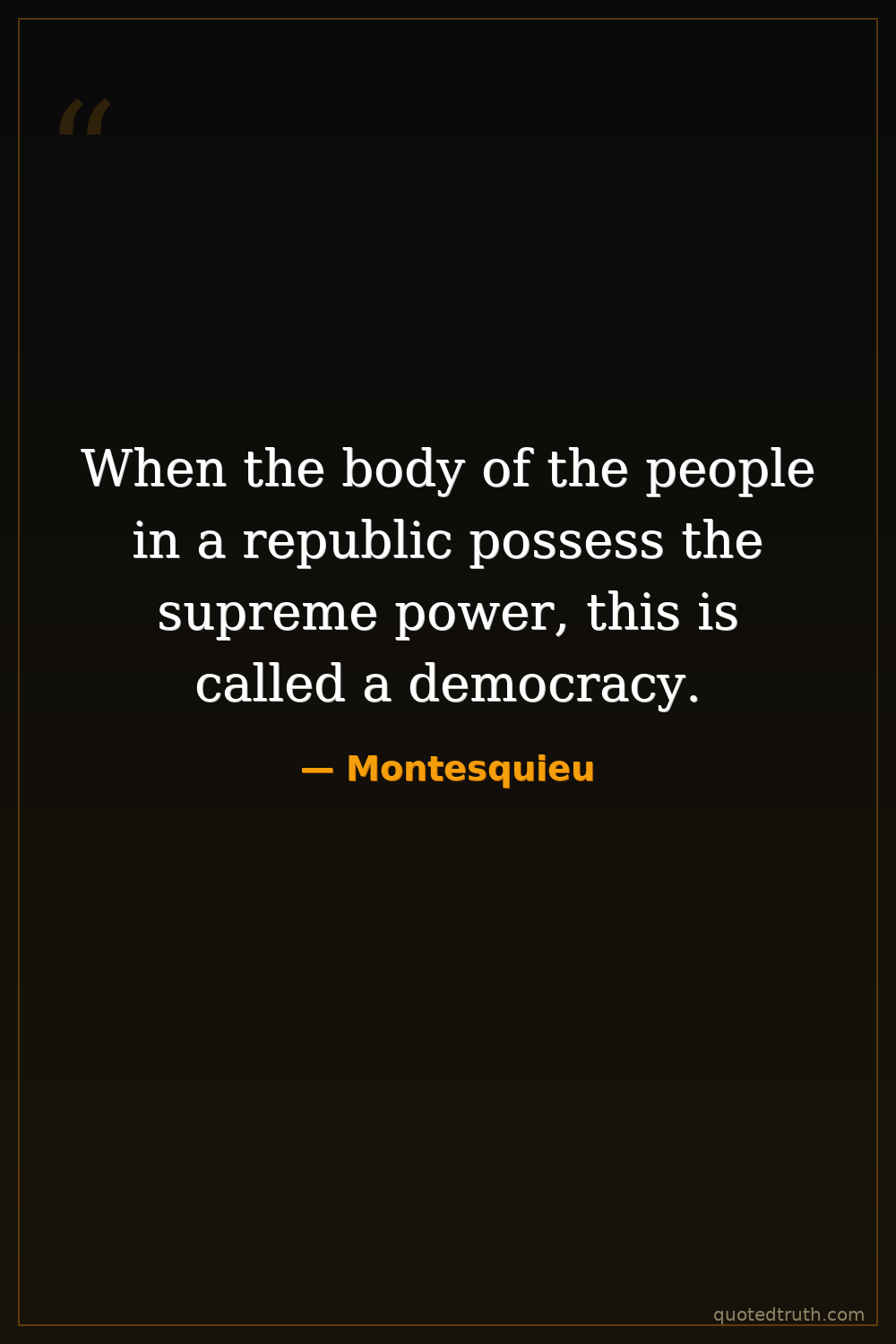 When the body of the people in a republic possess the supreme power, this is called a democracy.