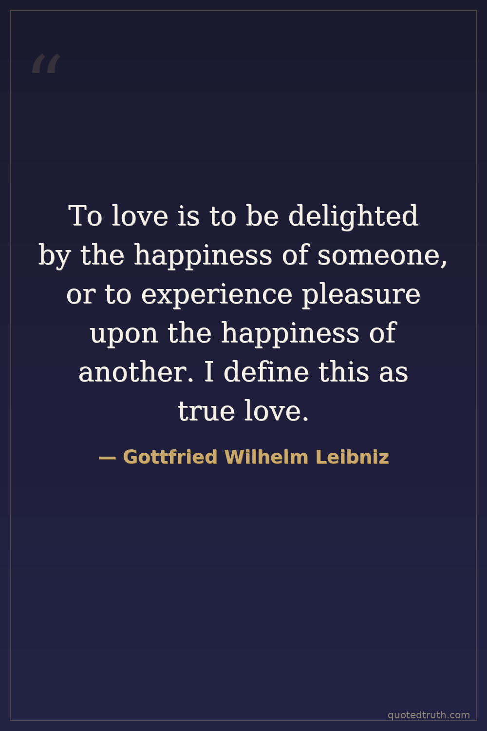 To love is to be delighted by the happiness of someone, or to experience pleasure upon the happiness of another. I define this as true love.