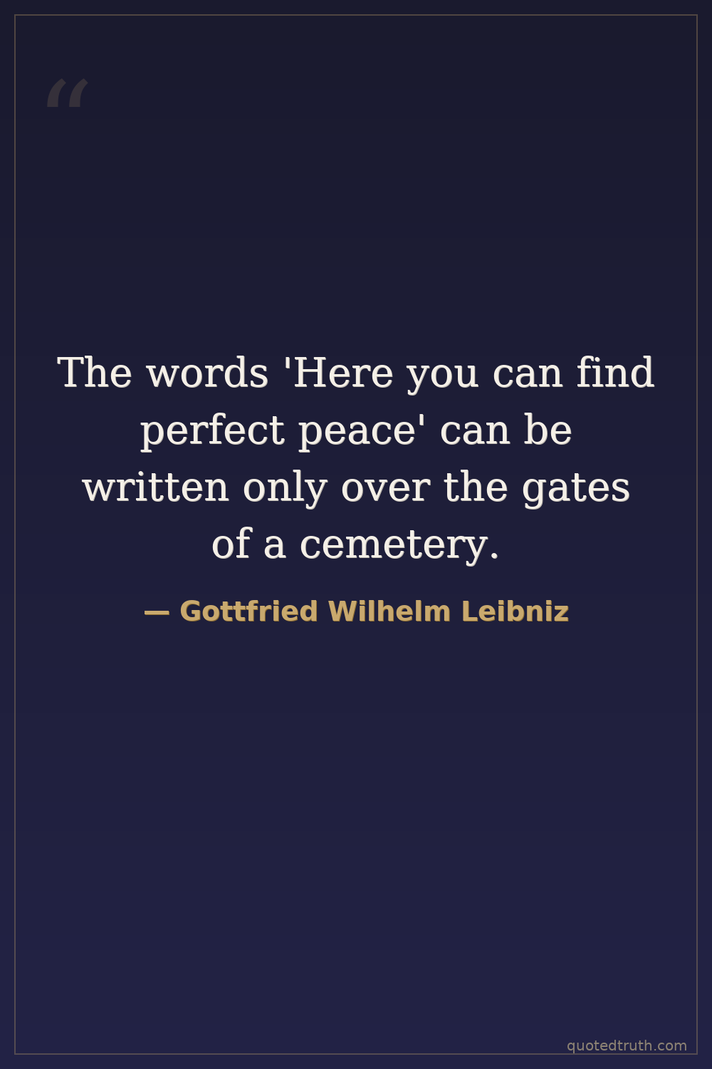 The words 'Here you can find perfect peace' can be written only over the gates of a cemetery.