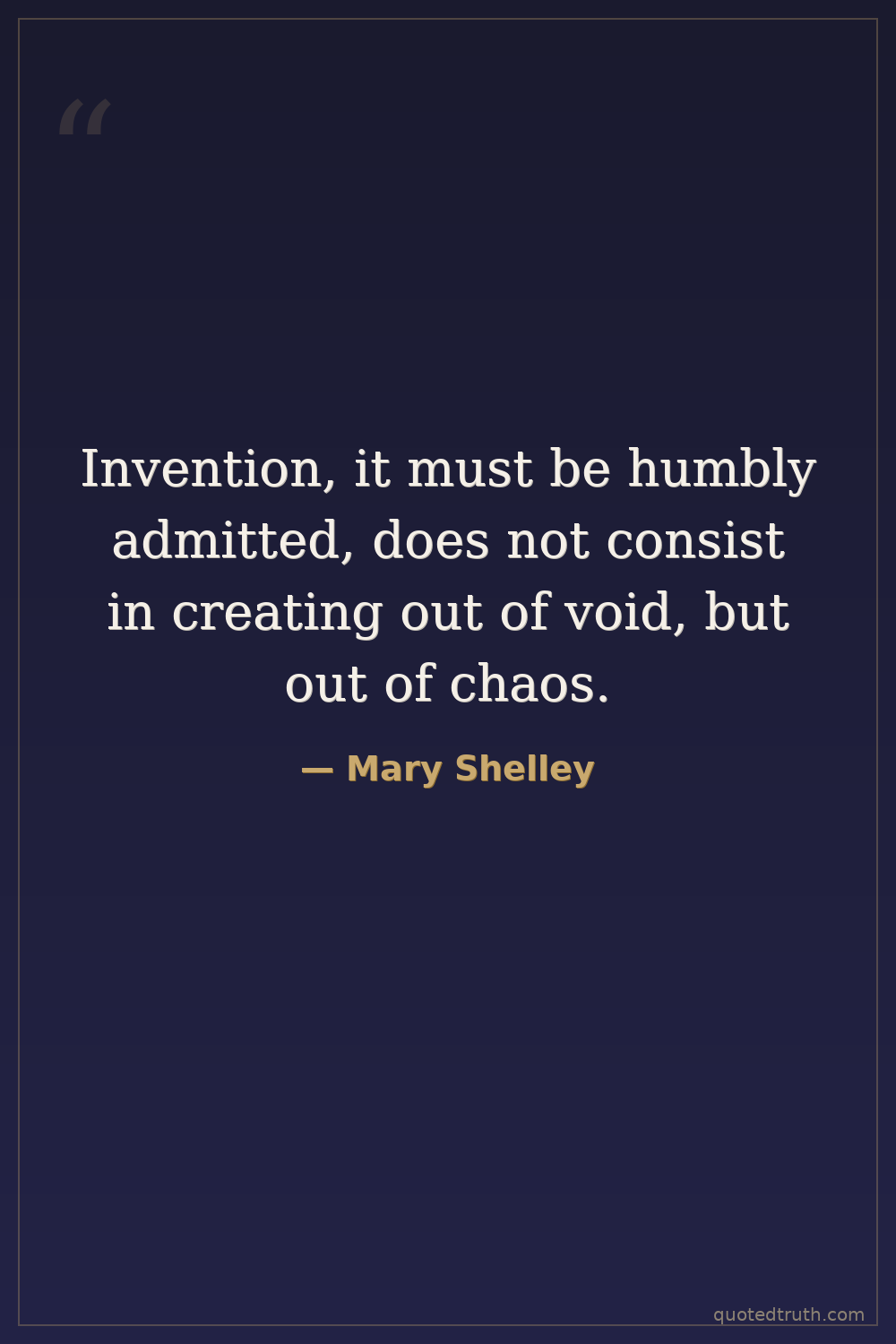 Invention, it must be humbly admitted, does not consist in creating out of void, but out of chaos.