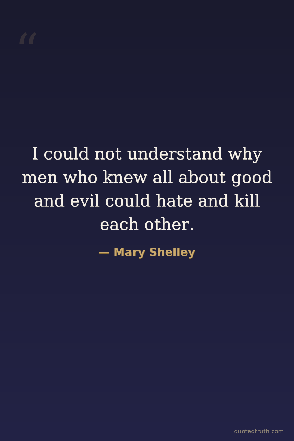 Frankenstein, spoken by the Creature, questioning human morality and conflict.