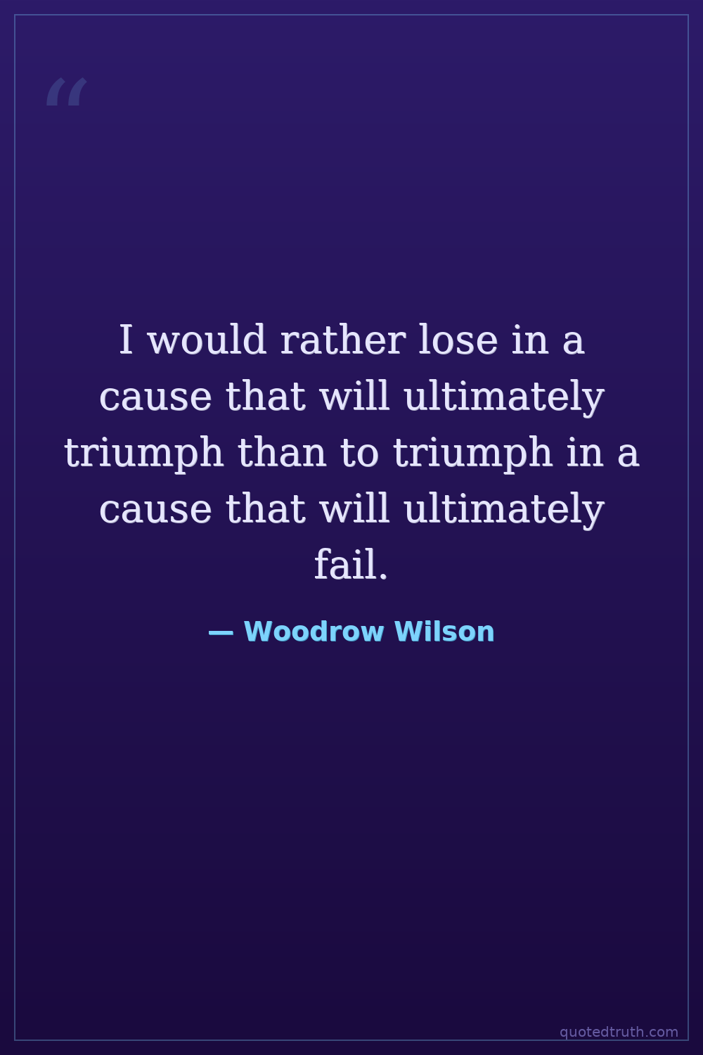 I would rather lose in a cause that will ultimately triumph than to triumph in a cause that will ultimately fail.